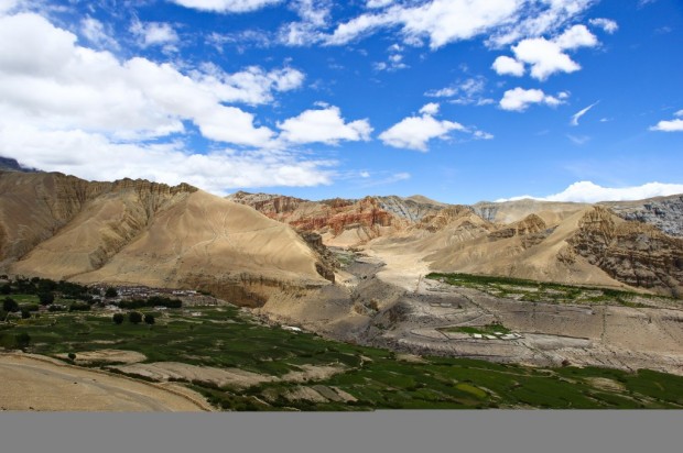 Our journey starts with a special permit check up and onwards to the riverbank of Kaligandaki up stream. During the walk we have scenic picturesque place to stop through the sandy and windy trails. This trails follows the up and downhill. Firstly we reach Tangbe village with narrow alleys amongst white washed houses, fields of buckwheat, barley, wheat and apple orchards. From there we trek forward to Chhusang and after crossing the river head up to the huge red chunk of conglomerate that has fallen from the cliff above, forming a tunnel through which the Kaligandaki follows. We head on to small ridges reach at Chele village. (B, L, D)