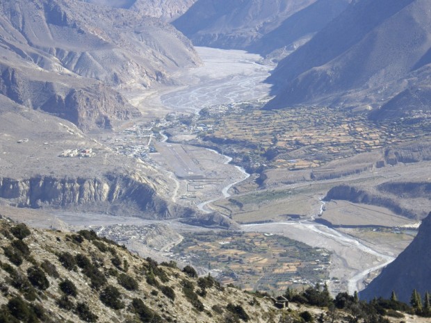 Your trek path skirts around and descends to the warm areas of paddy fields partially penetrated by the tributary Dhora Khola. After crossing it, the main path ascends the cultivated valleys, passing rural farmhouses, and goes through a hamlet to a mountain path then skirts around the ridge. The path continues winding steeply uphill for two hours and coming out at the top of the ridge, the path descends gradually to a small farm village at Bagar, and the last village en-route before Marpha village is reached at the Kali Gandaki valley. You camp overnight at the primary school playground.